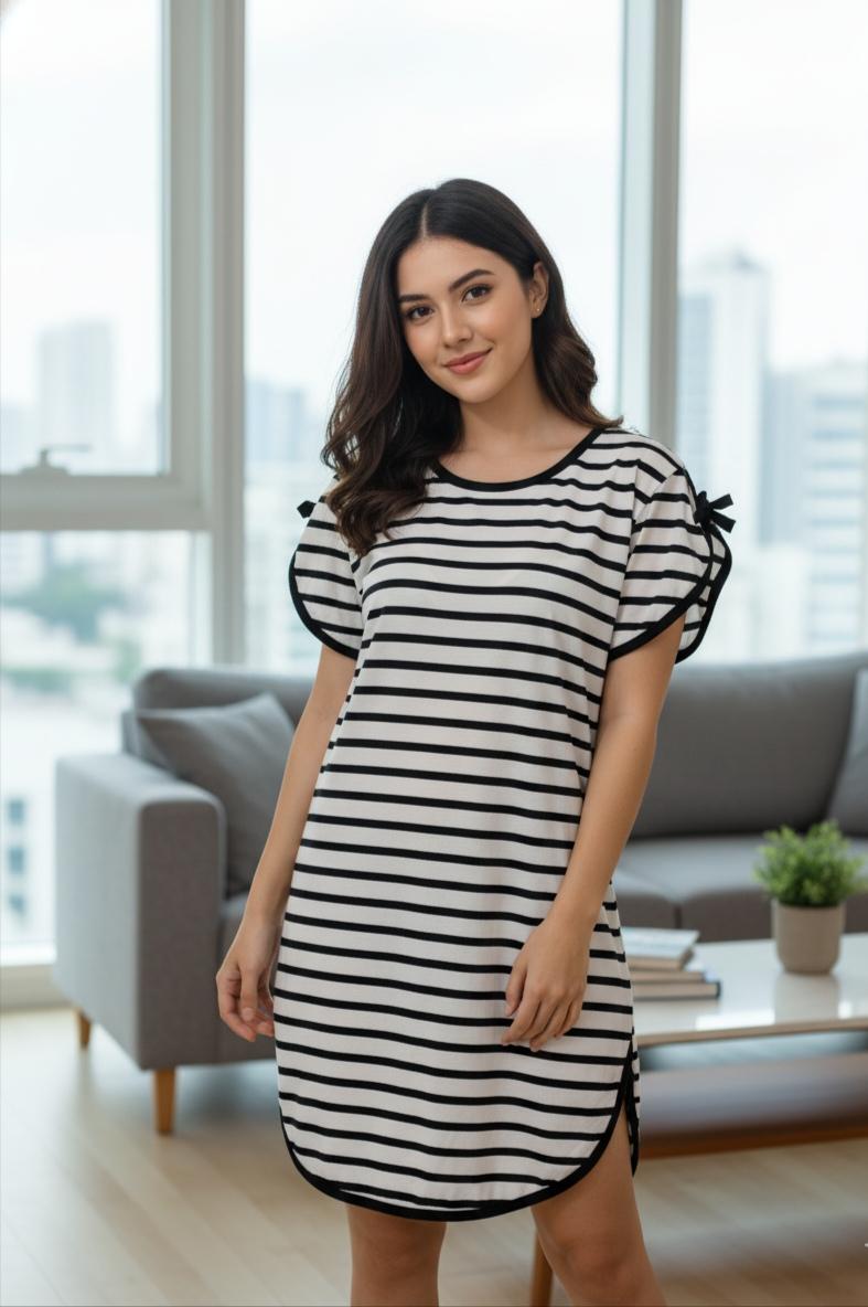 - Pattern: Classic horizontal nautical stripes (Breton style) in high-contrast black and white.