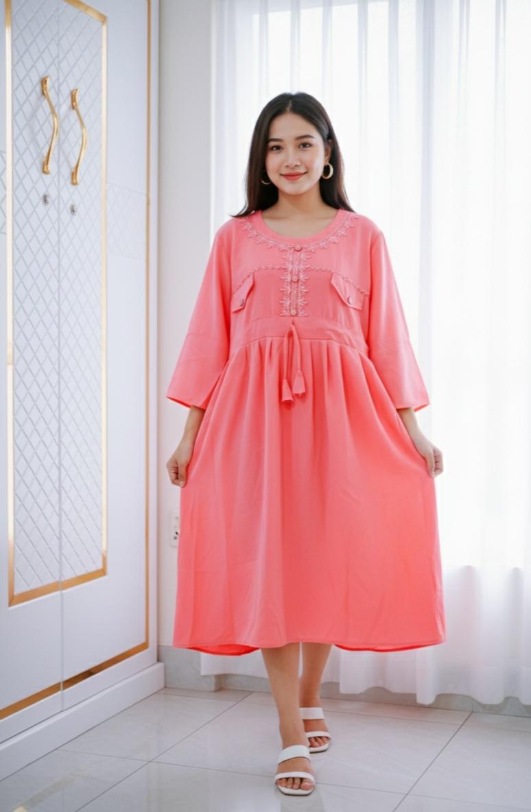 - Sleeves: It has 3/ 4 quater wide sleeves (sometimes called "bell" or "bracelet" sleeves), which add to the breezy, modest aesthetic.