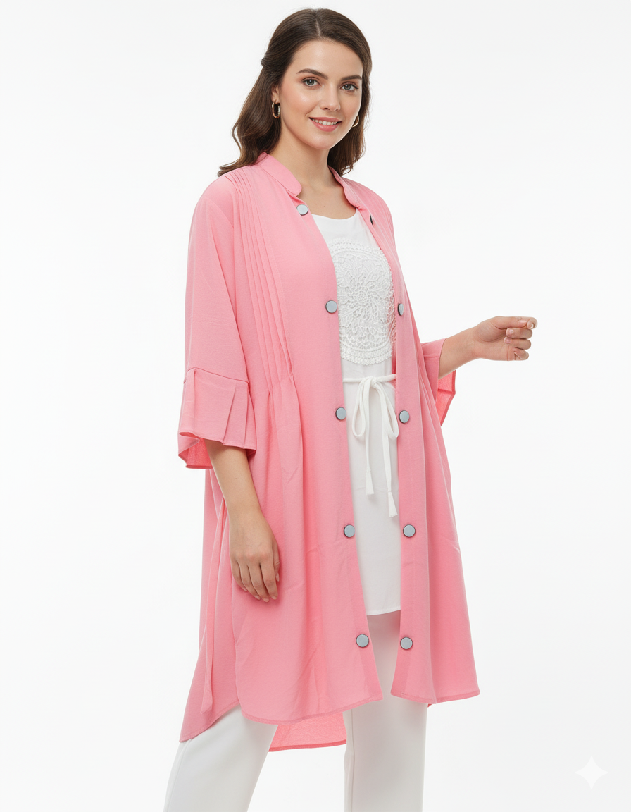Outer Layer: Pink Open-Front Tunic