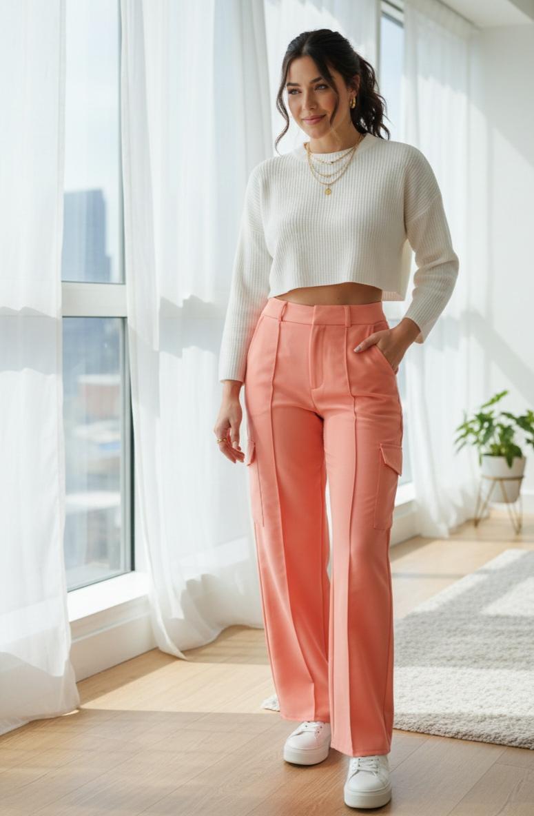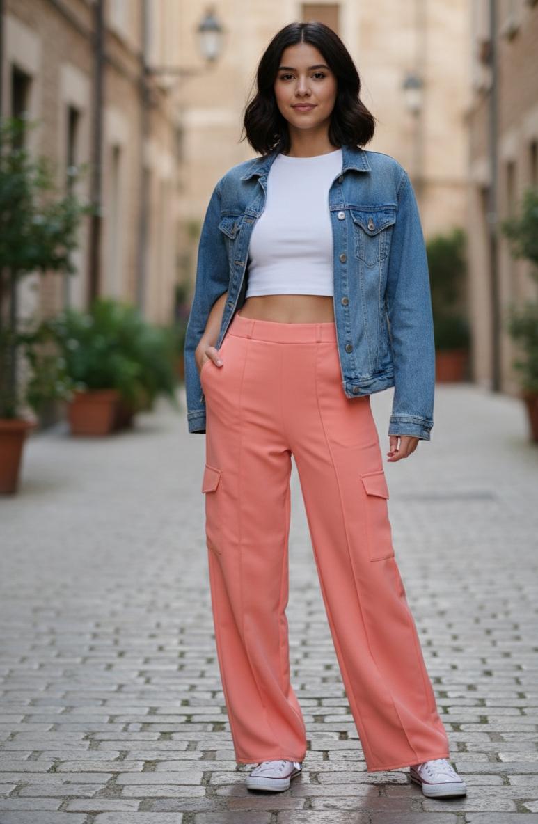 - Silhouette: A High-Waisted fit that flows into a Wide-Leg or Palazzo cut. This gives the pants a more sophisticated, elongated look compared to traditional baggy cargos.